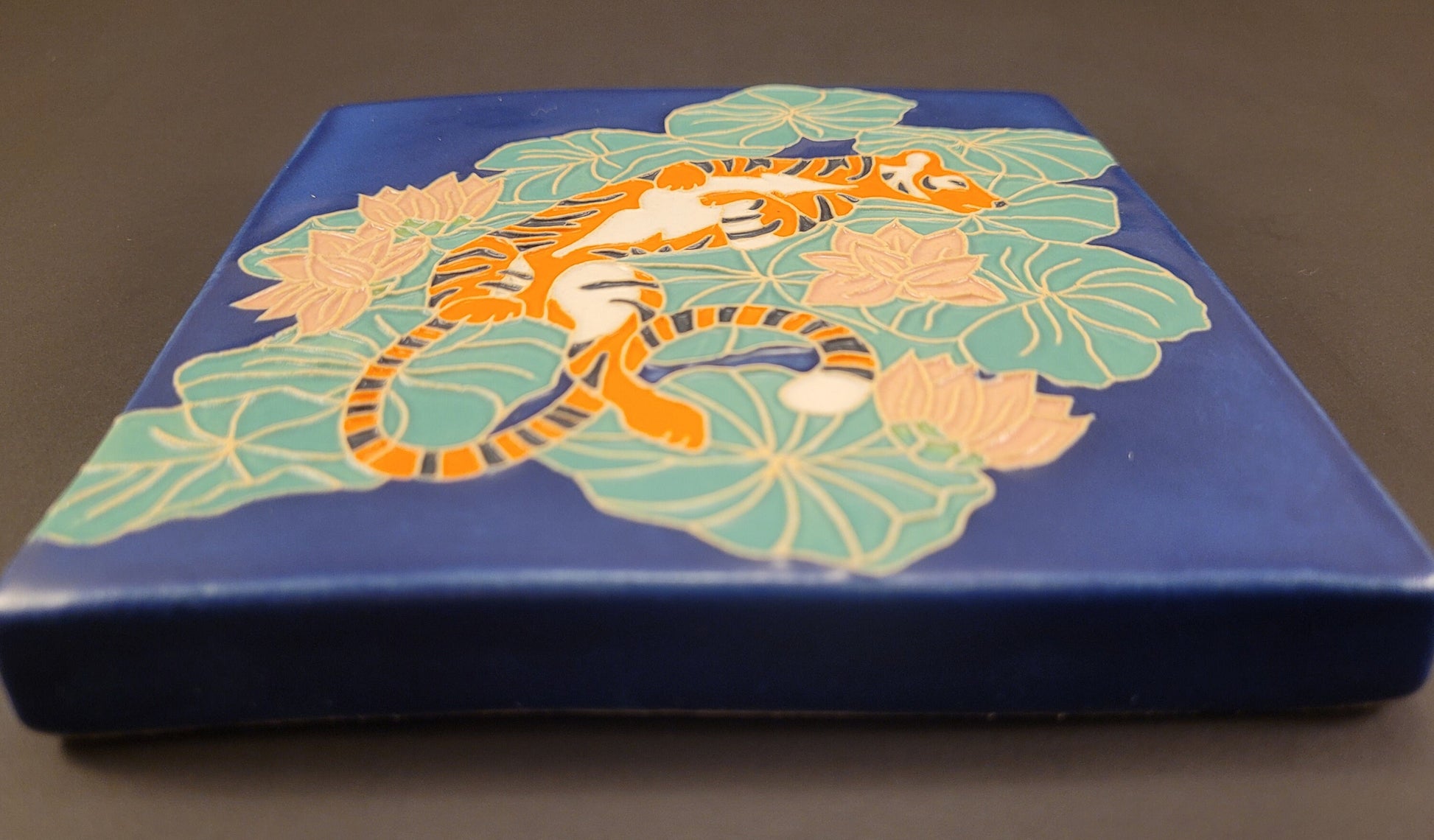 Do Tigers sleep in Lilly Patches? Whether or not you're a Phish fan, this brightly glazed tile is perfect to add a pop of color to any space. This handmade ceramic art tile can be easily hung on a wall or displayed using a small easel. The detailed tile is pressed into a hand-carved mold, by none other than yours truly, and then finished up with a couple of kiln firings and some intense glazing. Please keep in mind that since each tile is hand pressed and glazed, variations are to be expected. This is just part of the beauty of handmade tiles!